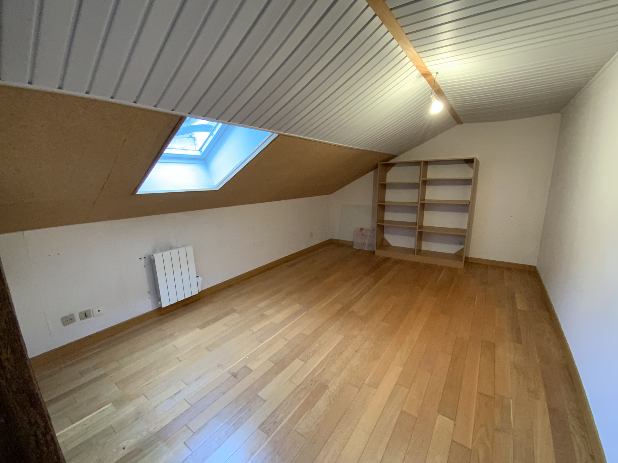 - Au deuxième niveau (+1) : deux pièces manssardées en efilades pouvant faire usage de chambre ou de pièce de vie